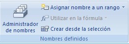 4.2 Nombres Definidos: Es la segunda sub-pestaña de Formulas y consta de aplicaciones necesarias para darle nombres especificos a ciertos elementos del documento como Celdas.